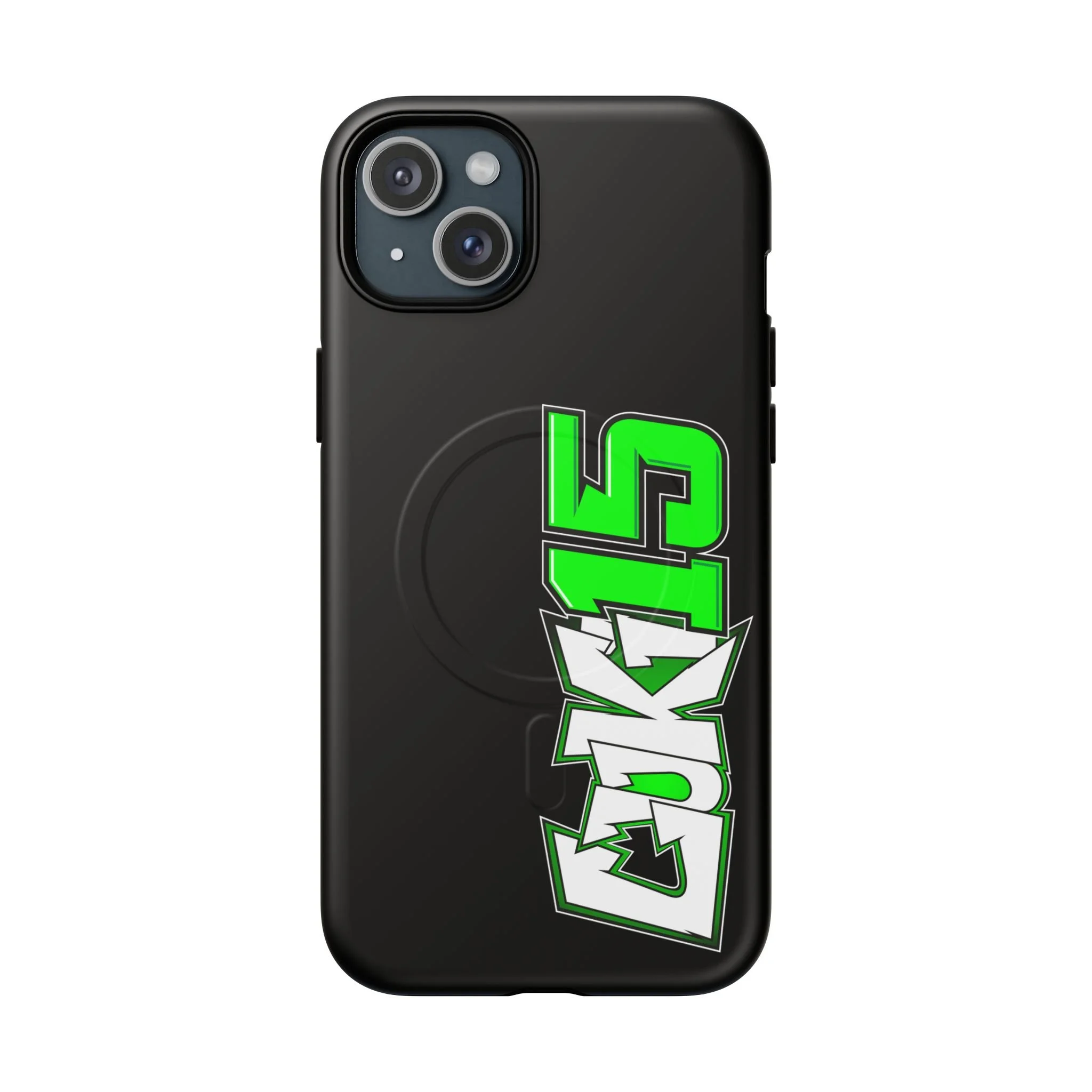 Black phone case with Luki15 logo